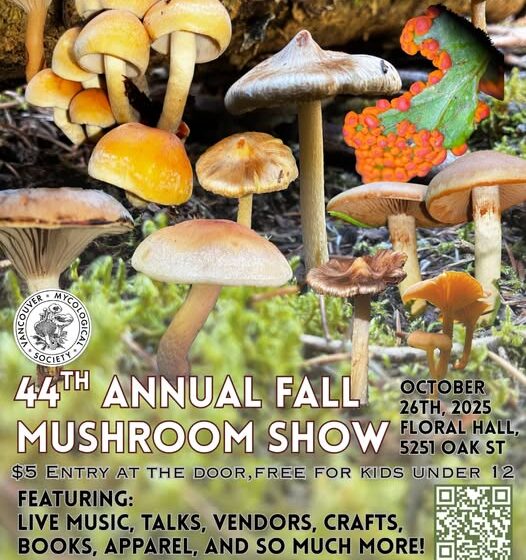 10 月 26 日 上午 10 點至下午 5 點溫哥華真菌學會:年度蘑菇展 屆時將有現場娛樂表演、藝術和手工藝、嘉賓演講以及令人眼花繚亂的展覽,定會讓您印象深刻。 屆時將舉辦一場服裝比賽,選出最佳蘑菇造型服裝,並提供豐厚獎品。 地點:範杜森植物園花廳及雪松室 時間:上午 10 點至下午…