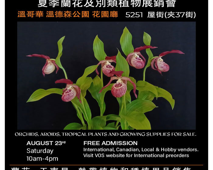 一年一度的夏季特賣即將於8月23日星期六舉行。快來尋找溫哥華其他地方找不到的稀有蘭花、天南星科植物和熱帶植物! 預訂您心儀的蘭花,為自己或摯愛之人保留一株獨一無二的植物。 在溫哥華蘭花協會的會員專區,觀看蘭花文化演示,並解答您的任何問題。在這裡,幫助您實現蘭花夢想! 範杜森花園 – 花卉大廳日期:8月23日時間:上午10點至下午4點