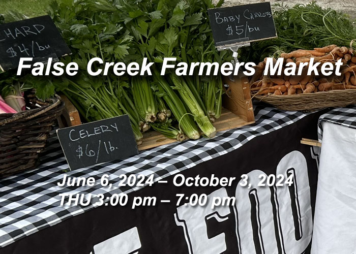 福溪農貿市場 (False Creek Farmers Market) 位於太平洋大道 (Pacific Boulevard) 和魁北克街 (Quebec St) 交匯處,毗鄰海堤,可欣賞福溪 (False Creek) 的景色。 這個繁華的地區距離溫哥華科學館僅幾步之遙,有很多行人和騎自行車的人沿著海堤經過。 每周新鮮購買時令水果和蔬菜、自然飼養的肉類、雞蛋和奶制品、新鮮魚類、精釀啤酒、葡萄酒和烈酒、手工預制食品和手工工藝品。 每周都有食品和咖啡卡車到場。 福溪農貿市場 (False Creek Farmers Market) 於6月至10月每周四下午3:00至7:00開放。 July 3, 2025 – October 2, 2025 THU…