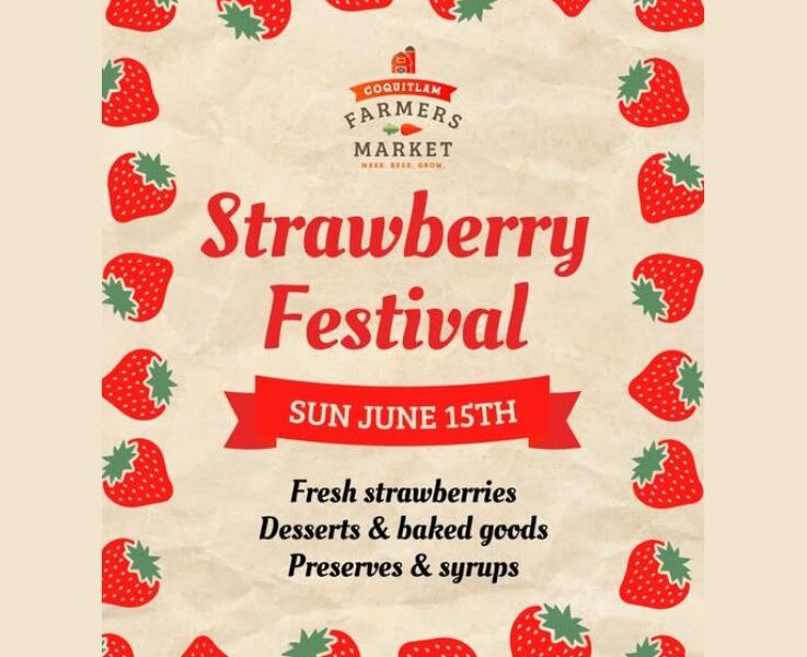 草莓節!新鮮莓果、烘焙食品、果醬等等。購買草莓奶油蛋糕(農夫市集會員 7 加元/非會員 8 加元),所得款項將捐贈給我們的「農產品力量」(POP)青年俱樂部! 6月15日星期日 上午9點至下午1點 自上世纪90年代末设立农贸市场以来,高贵林农贸市场(Poirier Street Farmers Market)在社区心中占有特殊的地位。 有超过70家以食品为先的摊主参加这个每周市场, 每周都有各种各样的供应商聚集在一起展示他们在BC省制造、烘焙、种植或饲养的产品。地点:Dogwood Pavilion parking lot (Winslow Ave & Poirier Street)1655 Winslow AveCoquitlam, BC