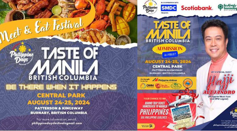 2024马尼拉美食节将其庆祝精神扩展到美丽的不列颠哥伦比亚省,并与菲律宾日节日协会合作,该协会自 2006 年以来一直是不列颠哥伦比亚省历史最悠久的菲律宾日节日庆祝活动的组织者。 为期 2 天的热闹活动,享受 节日带来的乐趣、兴奋、创意和联系! 2024 年 8 月 24 日至 25 日(两天上午 10 点至下午 6 点)在本拿比中央公园举行。 不要错过这个令人难忘的艺术、美食、音乐、文化和社区庆典!邀请您的朋友和家人度过一个难忘的周末! 免费入场!