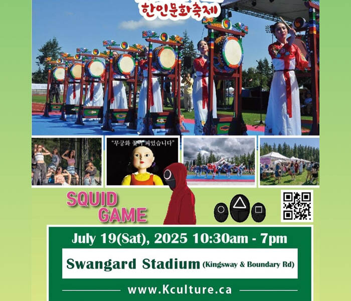 韓流、美食與文化-7月19日!活力四射的韓流舞蹈比賽、優雅的傳統音樂和舞蹈,以及展現韓國悠久歷史和現代創意的互動文化展覽,定會讓您流連忘返。遊客可以探索琳瑯滿目的攤位,體驗韓國時尚、保養、藝術等精彩內容。 現場新鮮供應的烤肉、炒年糕、火鍋和泡菜煎餅等各種韓國街頭美食定會讓您流連忘返。無論您是初次接觸韓國文化,還是久負盛名的韓國文化愛好者,都能在這裡找到屬於自己的樂趣。 全天參與遊戲、工作坊和拍照環節。千萬不要錯過在大溫哥華中心地帶體驗韓國活力四射精神的機會。 入場完全免費,歡迎所有人參加。如欲了解更多資訊或參與,請造訪 www.kculture.ca 7月19日 上午10:30 – 下午7:00Swangard Stadium Concession3883 Imperial Street本拿比V5J 1A3