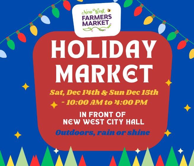 新西農夫市集將於12月14日至15日在市政廳外舉辦第五屆年度假日市集! 與您的朋友和家人一起過來寻找廚房裡儲備當地種植的農產品,並從 80 多名當地工匠那裡找到所有您圣诞节最後一刻的禮物!提供不間斷的現場音樂和娛樂表演、5 輛美食車以及從肥皂到烘焙食品、從巧克力到珠寶以及介於兩者之間的各種產品- 這是您享受充滿樂趣的慶祝活動並尋找完美獨特的一站式集市。 日期:2024年12月14日星期六2024年12月15日星期日時間:10:00 am4:00 am主辦單位:新威斯敏斯特農夫市集 新西敏市政廳 – 511 Royal Ave, 新威斯敏斯特,…