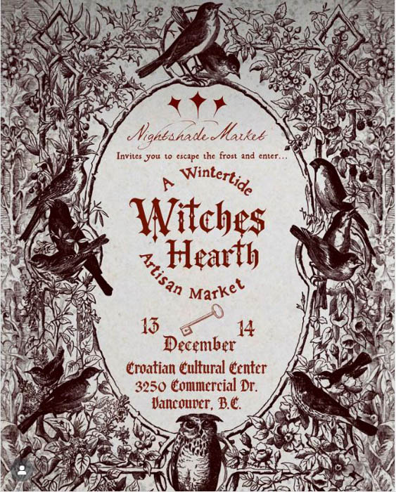 來吧,加入友好的鄰裡女巫們,在12月13日和14日於克羅埃西亞文化中心共度一個充滿慶祝和藝術的聖誕週末! 「女巫爐火節」(Witches Hearth)是第一個由女巫主辦的冬季活動,歡迎所有人參加,尤其歡迎那些充滿好奇心和魔法氣息的人們。誠摯邀請您參觀爐火市集,這裡匯集了來自卑詩省各地的工匠和手工藝者。從寒冷的室外走進溫暖的室內,漫步於擺滿各種手工珍品的攤位之間,感受聖誕精靈的靈感。當地的女巫們將與您分享一年中較為黑暗的月份裡,民間傳說和傳統是如何豐富多彩的,以及聖誕節的盛大慶典!